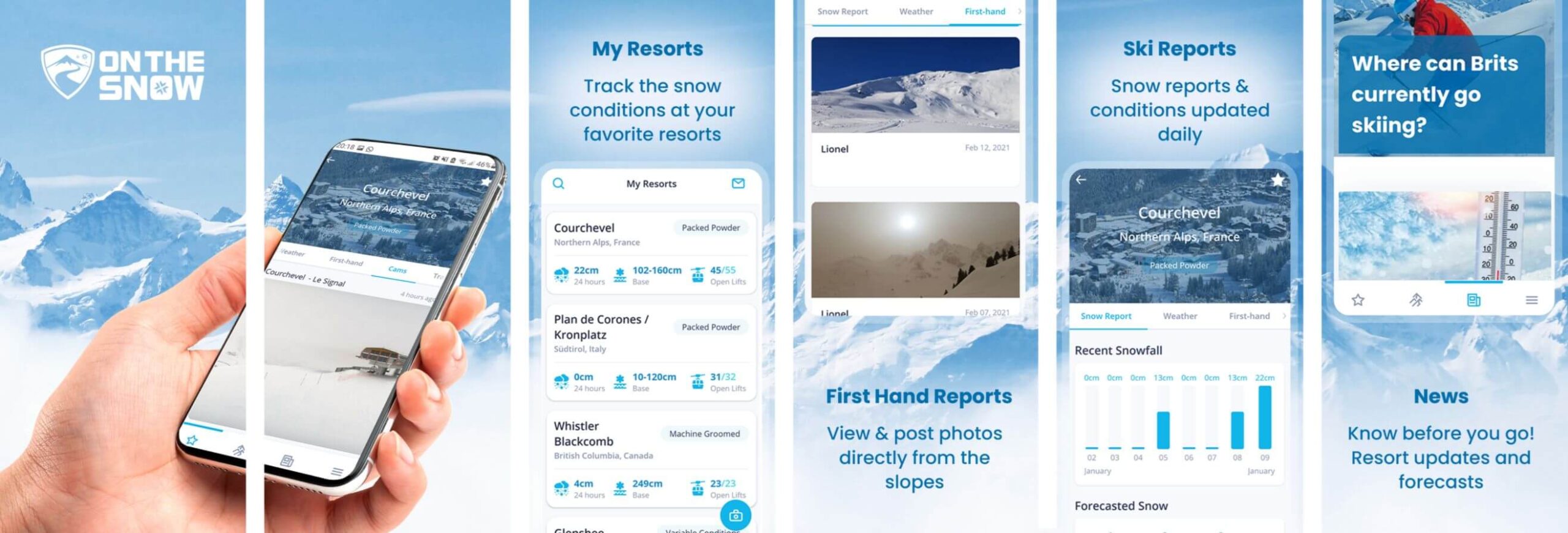This app is provides snow reports, snow depth, weather forecasts and webcam feeds for over 2,000 ski resorts globally. You can save your favourite resorts (“My Resorts” feature) and track how conditions are evolving there.