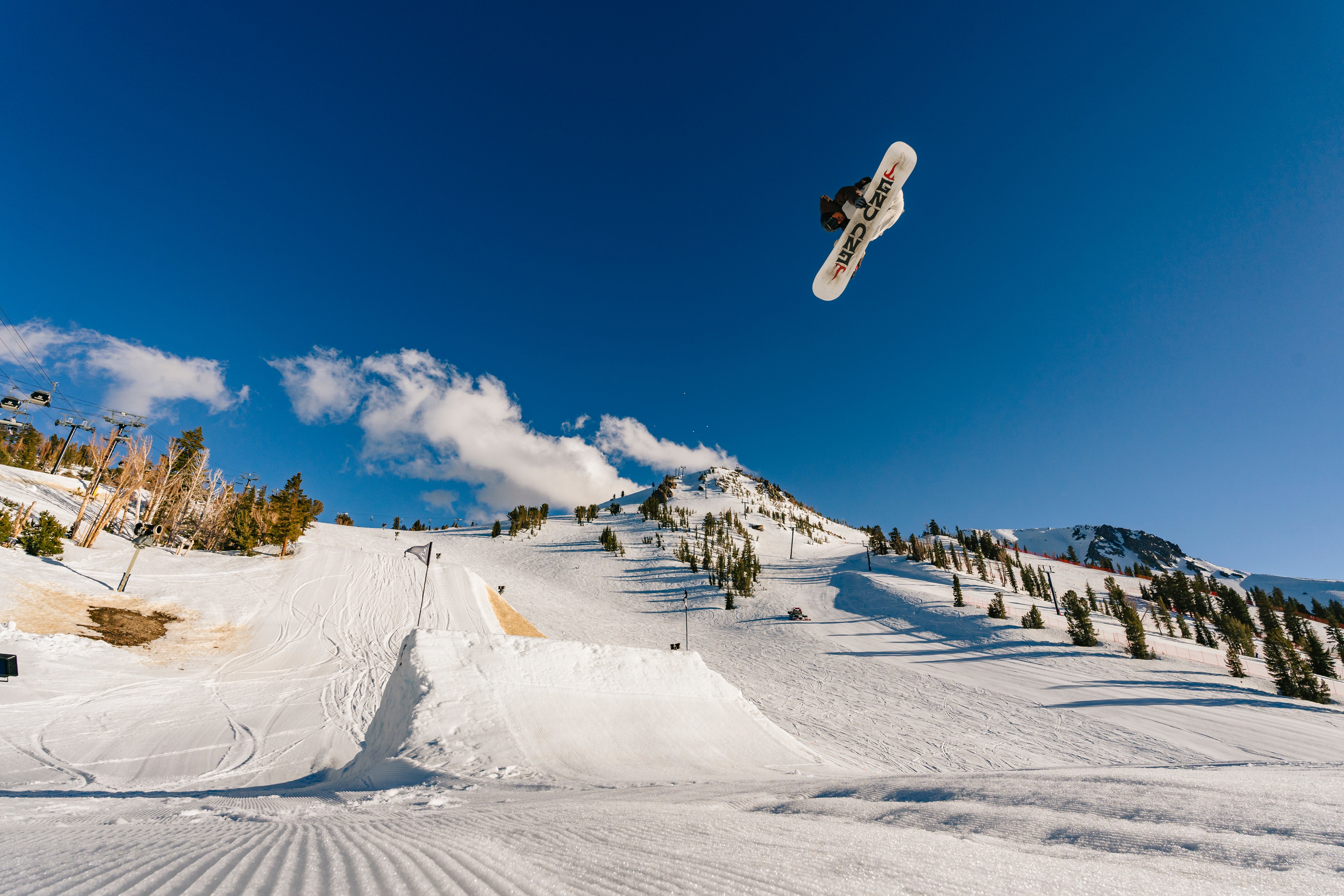 Palisades-Tahoe draws big crowds on weekends and during holidays. However, they normally disperse during the week. There are lots of natural and man-made hits, cornices, cliff bands, and technical chutes. Skilled boarders battle it out in the Snowboard King of the Mountain competition each winter, which always draws the crowds. Kids are well looked after at the SnoVentures Centre,  Adventure Zone and Family Cross Course via the Big Blue Express (6-pack) chairlift.  Palisades-Tahoe recently gained a Burton Learn to Ride Centre.