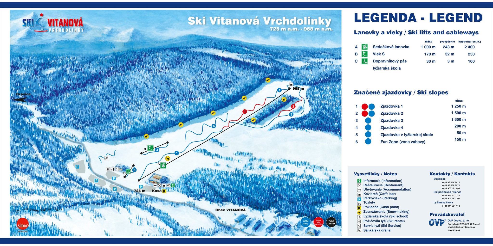 View the trails and lifts at Ski Vitanová with our interactive piste map of the ski resort. Plan out your day before heading to Ski Vitanová or navigate the mountain while you're at the resort with the latest Ski Vitanová piste maps. Click on the image below to see Ski Vitanová Piste Map in a high quality.