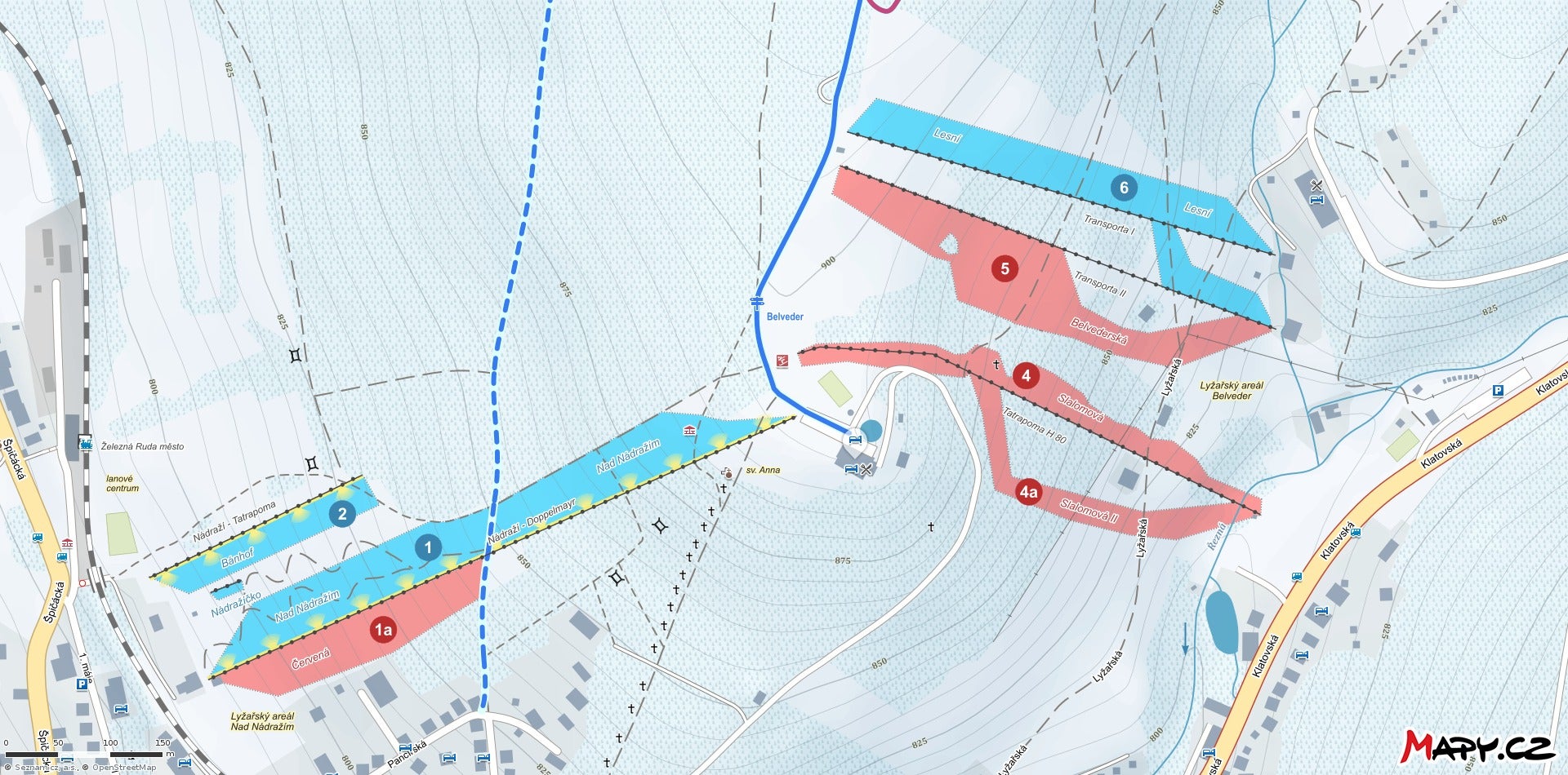 View the trails and lifts at Železná Ruda - Nad nádražím - Belveder with our interactive piste map of the ski resort. Plan out your day before heading to Železná Ruda - Nad nádražím - Belveder or navigate the mountain while you're at the resort with the latest Železná Ruda - Nad nádražím - Belveder piste maps. Click on the image below to see Železná Ruda - Nad nádražím - Belveder Piste Map in a high quality.